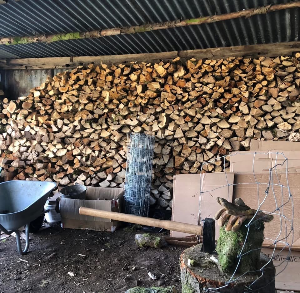On our journey back to the barn, we rolled another heaped wheelbarrow of firewood from the coppiced old hedge. It was interesting to see how quickly a worker’s path had formed in the fields, a little curvy line through the grass where volunteers had meandered back with tools, keen to be warmed up with tea and cake.